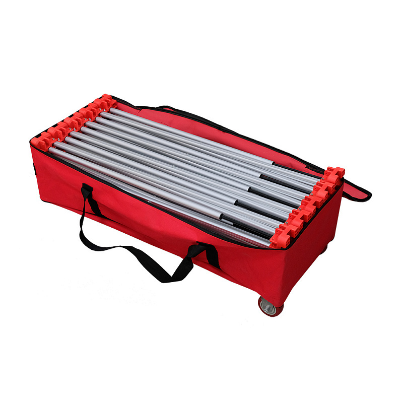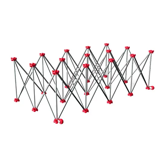 Раздвижной рабочий стол представляет собой универсальное основание рабочей поверхности для работы на улице или в помещении. Обладает высокой устойчивостью даже на поверхностях с перепадами 5см. Раскладывается в разных размерах в диапазоне от (ширина 480 мм, длина 900 мм, высота 1000 мм) до (ширина 1200 мм, длина 2300 мм, высота 750 мм). Конструкция состоит из прочных стоек, которые выдерживают значительные нагрузки (до 1000 кг).